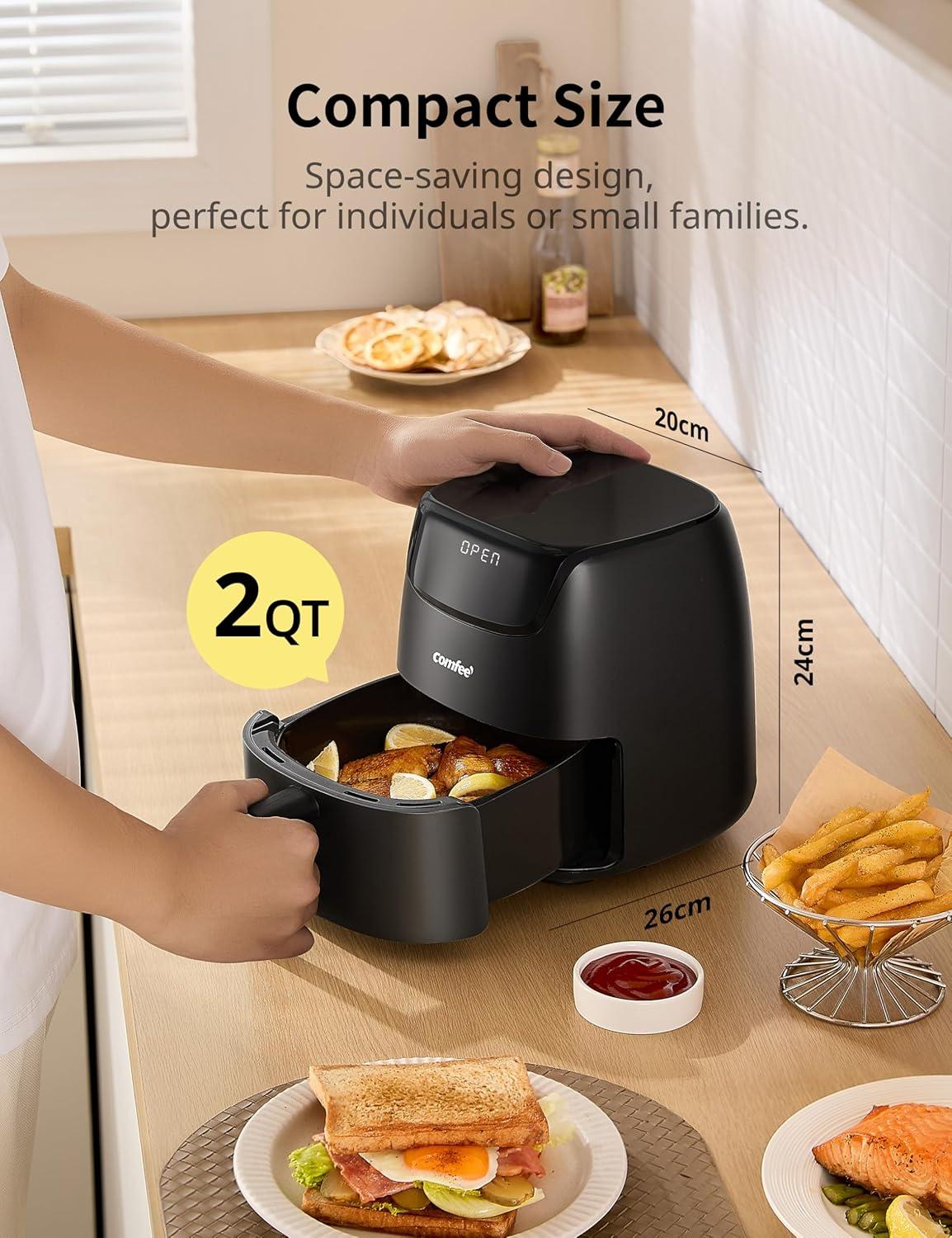 SPACE-SAVING COMPACT 2QT SIZE: The space-saving 2.2-quart mini design fits small kitchens, apartments, dorms, offices, and RVs. Ideal for quick personal meals without taking up counter space.